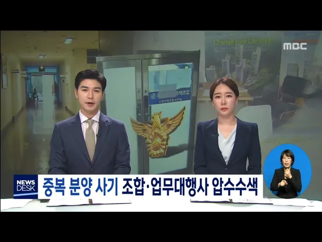 (앵커) 지역주택조합 아파트 중복 분양 사기 사건을 수사하고 있는 경찰이 지역주택조합과 업무대행사를 압수수색했습니다 노트북과 조합 명부 등을 압수한 경찰은 증거물 분석에 들어갔습니다. 송정근 기자입니다. (기자) 경찰이 중복 분양 사기가 발생한 지역주택조합 사무실에서 압수수색을 벌이고 있습니다. 오전 10시...