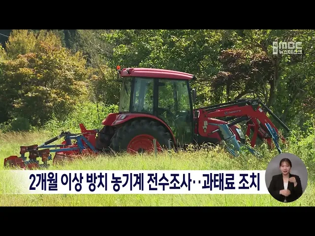 농기계 장기 장치로 인한 경관 저해와 폐유 등 유해 물질 유출을 막기 위해 전라남도가 실태 전수조사에 착수했습니다.이번 조사 대상은2개월 이상 방치된 농기계로 수리와 폐기 등 농가 대상 1차 계도를진행한 뒤 따르지 않으면 관련법에 따라 1천만 원 이하 과태료 부과 또는 폐기할 방침입니다.