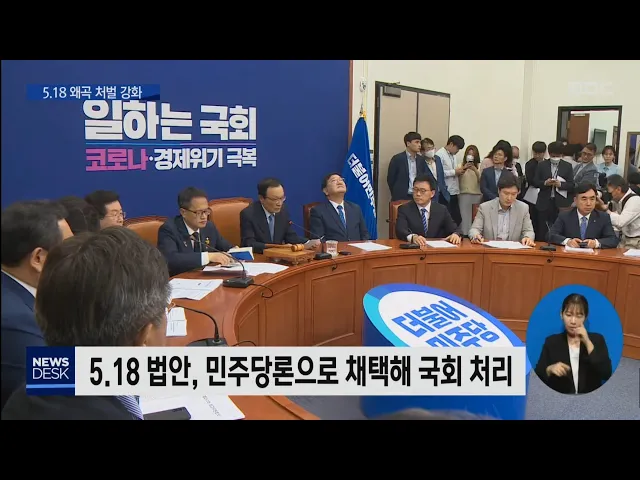 (앵커) 5.18 민주화운동 관련 법률안을 더불어민주당이 당론으로 발의하기로 했습니다. 5.18 역사왜곡 처벌과 5.18 진상규명조사위원회의 권한을 강화하는 법안이 조만간 제출될 예정입니다. 민주당은 5.18관련 법안을 올해안에 국회에서 처리하기로 했습니다. 이계상 기자.. (기자) 5.18 역사왜곡 처벌을 규정한 5.18민주...