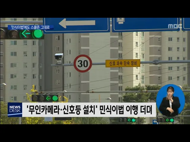 ◀ANC▶ 스쿨존에서 사고가 나면 운전자를 가중처벌 하는 '민식이법'이 시행된 지 두 달째입니다. 하지만 학교 주변의 교통안전 시설은 크게 바뀌지 않았습니다. 등교 개학이 늦춰지면서 준비할 시간을 벌었지만 경찰과 자치단체는 미적거리기만 했습니다. 우종훈 기자가 취재했습니다. ◀END▶ 신호등 없는 학교 앞 횡단...