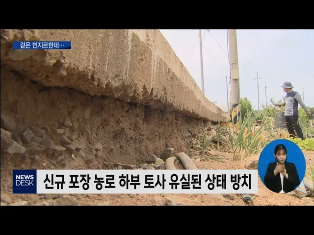 ◀ANC▶ 전남의 한 마을에서 추진된 밭기반 정비사업을 놓고, 주민들이 뿔 났습니다. 농로를 새로 포장했는데, 길 하부가 부실해 '속 빈 강정'과 다름없다는 겁니다. 양현승 기자가 취재했습니다. ◀END▶ ◀VCR▶ 주택과 농경지 사이로 길이 새롭게 포장된 무안군의 한 마을. 대형화하는 농기계와 주민 안전을 위해 밭...