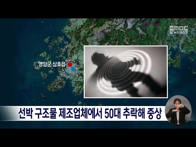 오늘 오전 9시 20분쯤영암군 삼호읍 대불산단 내 선박 구조물 제조업체에서 50대 노동자가 작업 중 6m 아래로 추락해 중상을 입고 병원으로 옮겨졌습니다.경찰은 이 남성이 배관 작업을 하다가 추락한 것으로 보고 현장소장과 사업주 등을 상대로 안전 보건 조치 의무 위반 여부 등을조사하고 있습니다.