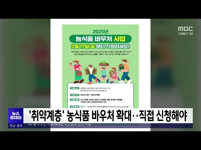취약계층의 농식품 구입 비용을 지원하는 농식품 바우처 카드 제도가 기존 5개 군에서 오늘(17)부터 22개 시군으로 확대 운영됩니다.지원 대상은 임산부와 영유아,18세 이하 아동이 있는 생계급여 수급 가구로4인 가구 기준 연 최대 지원금도 48만 원에서 100만 원으로 상향됐습니다.대상자들은 주민등록지 관할 주민센터 ...