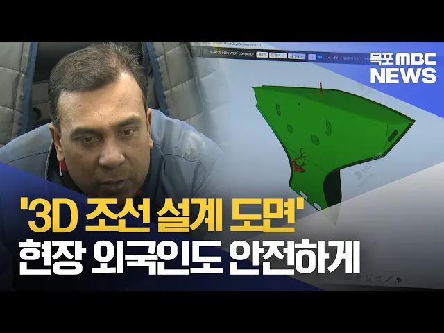 ◀ 앵 커 ▶조선업 현장은 중대 사고의 위험이 높은 만큼 작업 전 설계 도면의 충분한 이해가 필수적입니다.기존 복잡했던 종이 도면이 아닌3D 형상 입체 도면이 현장에 도입됐는데,외국인 비숙련공들도 반기고 있습니다.안준호 기자가 취재했습니다.◀ 리포트 ▶조선 현장에서 설계 도면에 맞춰 구조물을 배치하는 일을 하는 ...