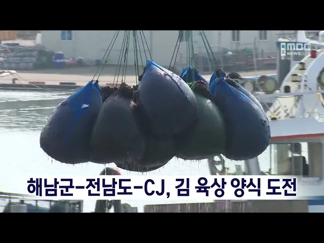 해남군과 전라남도, CJ제일제당이 협력해김 육상양식 개발사업에 도전합니다.이들은 관련 업무협약을 체결하고 정부가 추진하는 김 육상양식 기술개발 공모사업에 공동 대응하는 한편종자 개발과 양식 실용화 연구, 김의 수매와 판매 촉진 등에 협력하기로 했습니다.