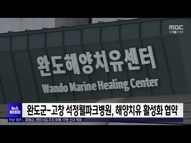 완도군과 전북 고창의 석정웰파크병원이해양치유산업 활성화 등을 위한 업무협약을체결했습니다.이번 협약을 통해 두 기관은해양치유산업 홍보와 병원 소속 직원과 환자를 위한해양치유 프로그램 운영 등에 협조하고,지속 교류하기로 했습니다.