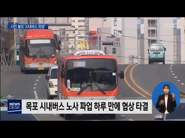◀ANC▶ 목포시내버스가 파업 하루만에 임금협상을 타결하고 정상 운행에 들어갔습니다 한해 수십억 원의 혈세가 투입되고 있는 시내버스 파업에 시민들은 곱지 않은 시선을 보내고 있습니다. 김양훈 기자가 취재했습니다. ◀END▶ 목포시내버스가 정상 운행을 시작했습니다. 파업 하루만입니다. 목포시내버스 노사는 오...