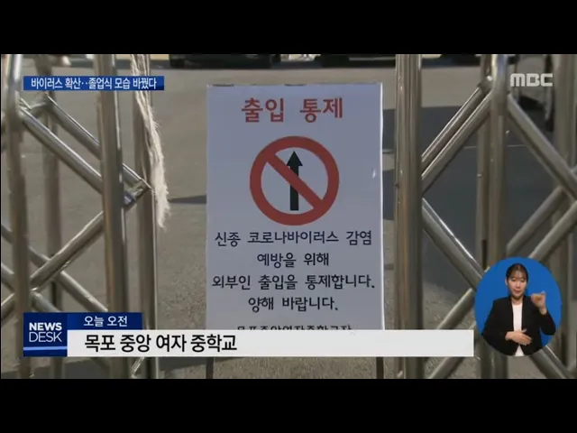 ◀ANC▶ 국내에서도 신종 코로나 바이러스가 확산되면서 졸업시즌을 맞은 학교의 졸업식 모습이 달라지고 있습니다. 강당에 모여서 하던 졸업식은 사라졌고 학부모들의 학교 출입도 통제된 가운데 치러지고 있습니다. 김 윤 기자가 취재했습니다. ◀END▶ 졸업식이 열리는 목포시내 한 중학교. 학교 정문은 굳게 잠겼고 ...