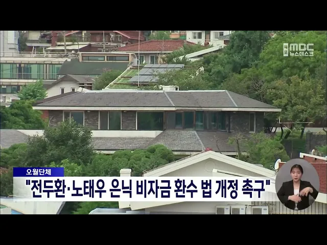 오월 단체가 전두환, 노태우 일가의 은닉 비자금 환수를 위한 법 개정을 촉구했습니다.단체는 오늘(10) 성명서를 내고"서울서부지법은 최근 정부가 전씨의 부인 이순자씨 등 11명을 상대로 낸 소유권 이전 소송을 각하했다"며 "전씨의 미납 추징금을 환수하기 위한 서울 서대문구 연희동 자택 소유권 이전 시도도 불발됐다"...