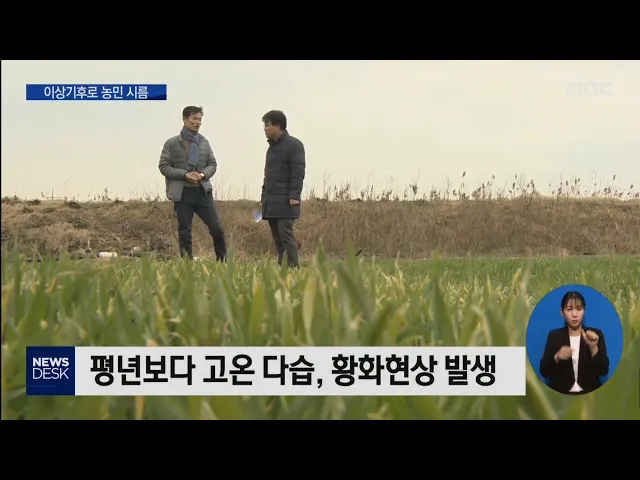 (앵커) 겨울답지 않는 포근한 날씨와 함께 평년보다 비도 많이 내리는 온난 다습한 기후가 올 겨울 기온의 특성인데요. 겨울답지 않은 겨울 날씨로 병해충 발생 우려가 높아지면서 농촌에서는 시름이 깊다고 합니다. 이재원 기잡니다. (기자) 한겨울 뿌르름의 상징 보리. 하지만 올해는 다 자라기도 전부터 누렇게 고개를 ...