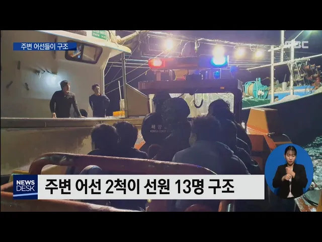 ◀ANC▶ 제주 서쪽 해상에서 어선이 뒤집혀 한 명이 숨지고 13명이 구조됐습니다. 사고 당시 주변 어선들의 발빠른 대처 덕에 인명피해를 줄일 수 있었는데요, 해경은 선원들을 구조한 어선 선장 2명에게 표창장을 수여할 예정입니다. 이소현 기자입니다. ◀END▶ ◀VCR▶ 칠흑 같은 어둠 속에 어선이 뒤집힌 채 바닥을 ...