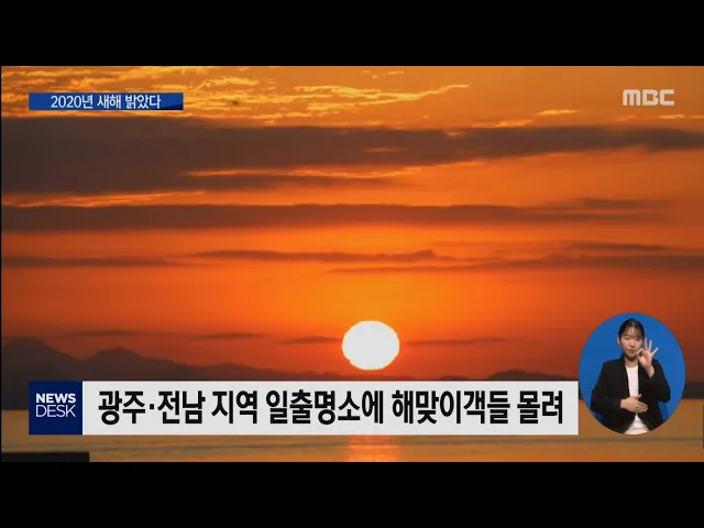 ◀ANC▶ 2020년이 새해가 시작됐습니다. 지역 해돋이 명소에는 새해 첫 해를 보려는 사람들이 몰렸는데요.. 모두들 각자의 소망을 떠올리며 희망찬 새해를 맞았습니다. 김안수 기자가 취재했습니다. ◀END▶ 2020년 첫 해가 서서히 떠오릅니다. 어둠을 밝히는 빛무리가 퍼지기 시작하더니 빨갛고 커다란 태양이 모습을 드...