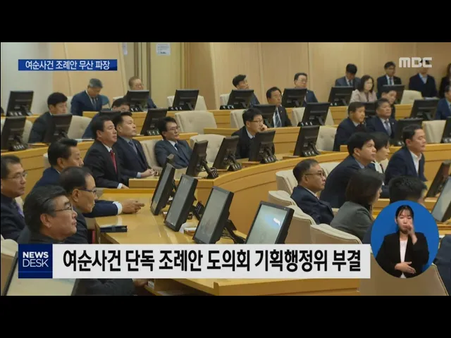 ◀ANC▶ 전남도의회가 오늘(12) 3차 본회의를 열고 상정된 안건에 대한 심의 의결에 들어갔습니다. 하지만 지역의 현안인 여순사건 단독 조례안 등이 포함되지 않아 지역 사회 내 반발 기류가 커지고 있습니다. 김주희 기자가 보도합니다. ◀END▶ ◀VCR▶ 제336회 전라남도의회 제2차 정례회 3차 본회의 전남도 내년 본...