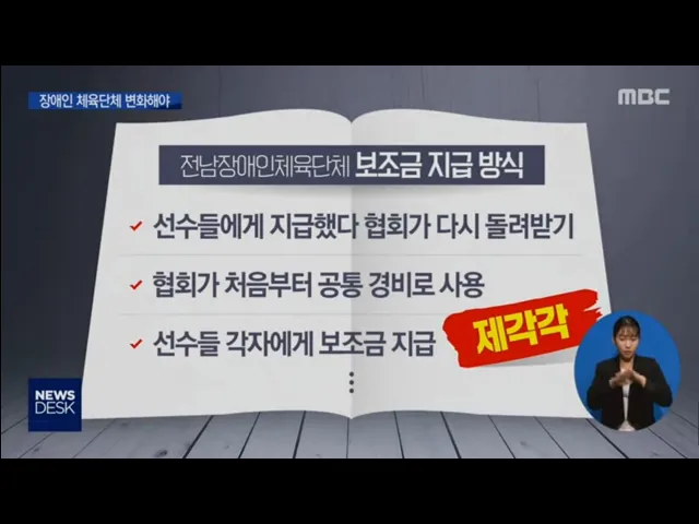 ◀ANC▶ 전남장애인당구협회 논란은 구성원간의 갈등도 문제지만 보조금 집행 등에 명확한 규정이 없기 때문에 발생한 겁니다. 장애인체육회 운영규정 개정 등 관리,감독기관의 보다 철저한 점검이 필요해 보입니다. . 김양훈 기자가 취재했습니다. ◀END▶ 전국 장애인체전 참가 선수들에게는 참가비와 훈련비가 지급됩...