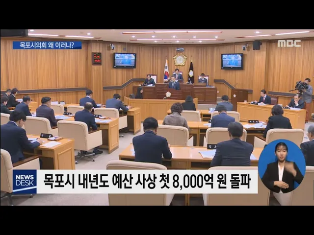◀ANC▶ 목포시가 사상 처음으로 8천억원이 넘는 내년도 예산안을 편성해 목포시의회에 제출했습니다. 그런데 목포시의회가 예결위 구성을 놓고 갈등을 빚는 등 볼썽사나운 모습을 보이고 있습니다. 김양훈 기자가 보도합니다. ◀END▶ 목포시가 편성한 내년도 예산안은 8천 2백억원 사상 처음으로 8천억원을 돌파했습니...