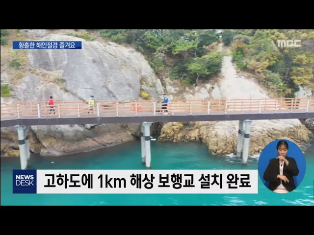 ◀ANC▶ 목포에서 해상케이블카를 타고 도착하는 고하도에 해상 보행교가 설치됐습니다. 황홀한 해안절경 등 아름다운 고하도 자연풍광을 만끽할 수 있는 새로운 관광명소가 될 것으로 기대됩니다. 양현승 기자가 보도합니다. ◀END▶ 목포의 작은 섬 고하도 바다와 맞닿은 해안가에 해상 보행교가 들어섰습니다. 고하도 ...