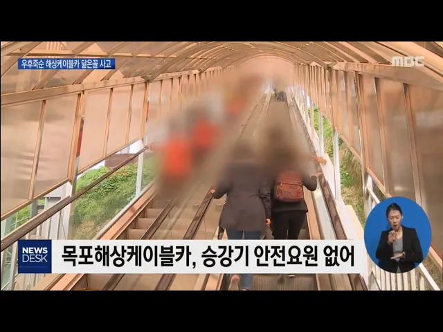 ◀ANC▶ 소잃고 외양간 고친다는 속담이 있는데, 해상케이블카 운영업체들의 안전의식을 이르는 말인 것 같습니다. 최근 목포해상케이블카 에스컬레이터 사고로 16명이 다쳤는데, 이미 비슷한 사고가 경남 사천에서도 있었던 것으로 드러났습니다. 먼저 개통된 곳의 안전관리 사례를 배우지 못했던 것일까요? 김안수 기자...