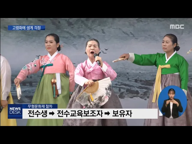 ◀ANC▶ 무형 문화재 전승 작업이 버겁게 진행되고 있습니다. 특히 농어촌 지역의 경우 고령화가 가속화되는데다 생계 걱정을 해야하는 상황이어서 이대로가면 전수생들이 끊기지 않을까하는 우려도 나오고 있습니다. 박영훈 기자가 취재 ◀END▶ 구수한 가락과 활기넘치는 몸짓. 무형문화재를 한곳에서 볼 수 있는 무대...