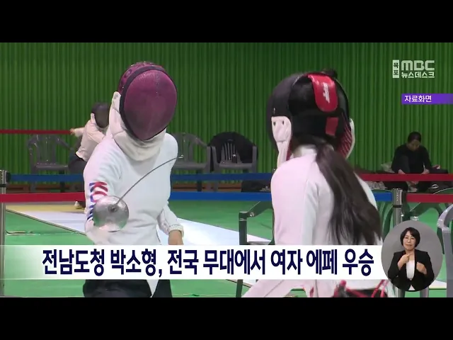 전남도청 펜싱팀 소속 박소형 선수가2025 전국남녀종목별오픈펜싱선수권 대회여자 에페 개인전에서 우승을 차지했습니다.박소형 선수는 준결승전에서도쿄올림픽 단체전 은메달리스트였던송세라 선수를 상대로 승리를 거뒀으며결승전에서는 강원도청의 이신희 선수를 만나11 대 10의 접전 끝에 우승의 영예를안았습니다.