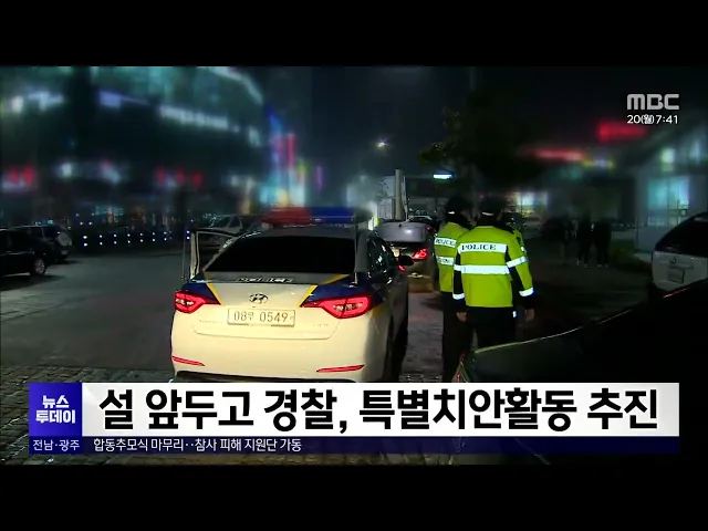 설 명절을 앞두고 경찰이이달 말까지 특별치안활동을 추진합니다.전남경찰청은 전통시장과 번화가 등인구 밀집 지역에서 순찰 활동을 하고, 가정 폭력과 교제 폭력 등 범죄 발생에 대비해 고위험군 전수 모니터링을 실시할 계획입니다.