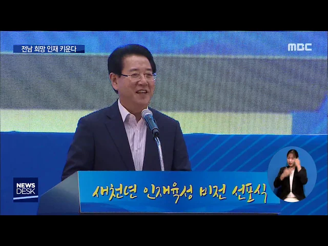 ◀ANC▶ 민선 7기 김영록 지사의 핵심 시책인 '새천년 인재육성 프로젝트'가 본격적으로 추진됩니다 오는 2022년까지 16개 사업에 500억원이 투입되는 인재육성 프로젝트의 추진 방향과 과제를 고익수 기자가 보도합니다 ◀END▶ 전남의 새 천년 인재육성 프로젝트는 미래 인재와 글로벌 인재, 창의·융합형 선도 인재 등 ...
