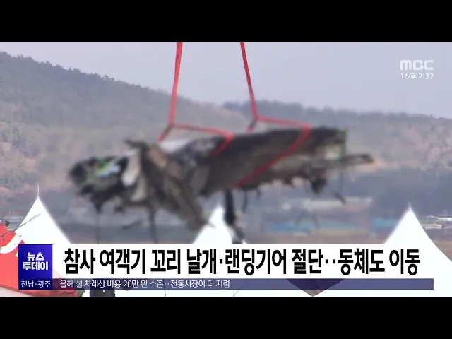 참사 여객기 꼬리 날개·랜딩기어 절단..동체도 이동