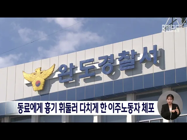 완도경찰서는동료에게 흉기를 휘둘러 다치게 한30대 이주노동자를 긴급 체포해구속영장을 신청했습니다.이 이주노동자는 어제(15) 자정쯤완도군 신지면의 한 양식장 숙소에서음악 소리를 줄여달라고 말한 동료에게 화가 나흉기를 휘두른 혐의를 받고 있으며,피해자는 생명에 지장이 없는 상태로치료를 받고 있습니다.