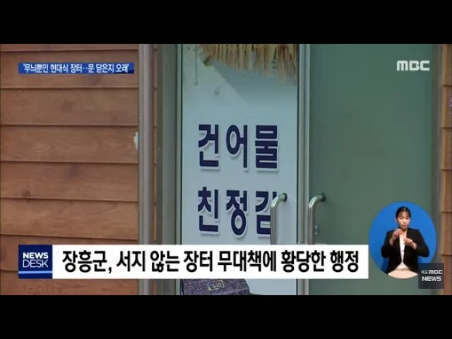 ◀ANC▶ 현대식으로 신설한 전통 시장이 문을 닫은 채 방치되고 있습니다. 혈세를 들였지만 사전 준비도 사후 관리도 모두 엉터리입니다. 박영훈 기자가 취재했습니다. ◀END▶ 지난 2001년 문을 연 장흥군 유치시장입니다. 장흥댐 건설로 수몰된 기존의 전통 5일장을 옮겼습니다. 천제곱미터의 면적에 8개의 점포. 그러...