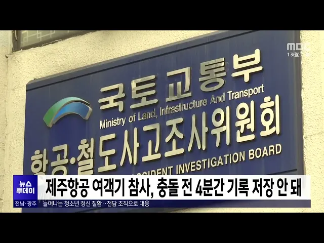제주항공 참사가 발생한 사고기의 블랙박스에충돌 전 마지막 4분 간의 기록이 저장되지않은것으로 드러났습니다.국토부 항공철도사고조사위원회는미국에서 사고기 비행기록장치 등을 분석한결과항공기가 로컬라이저에 충돌하기 약 4분 전부터자료 저장이 중단된 것으로 파악됐다고 밝혔습니다.항철위는 원인 분석과 함께다...