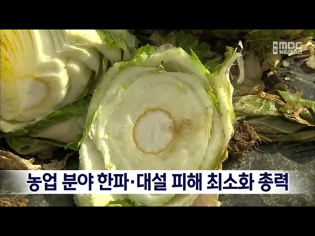 감작스런 한파와 대설로지역 월동작물의 피해와 생육부진이 우려됨에 따라 철저한 관리가 요구됩니다.지역 농정당국은최근 이어진 많은 눈과 한파로 월동 배추와 시설 하우스 재배농가 등의 피해가 우려된다며농작물과 시설물 관리에 주의해달라고 당부했습니다.또 피해 작물에 대해서는 조기 출하를 유도하고겨울철 과채류...