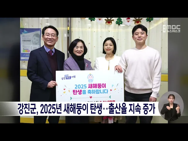 강진군, 2025년 새해둥이 탄생..출산율 지속 증가
