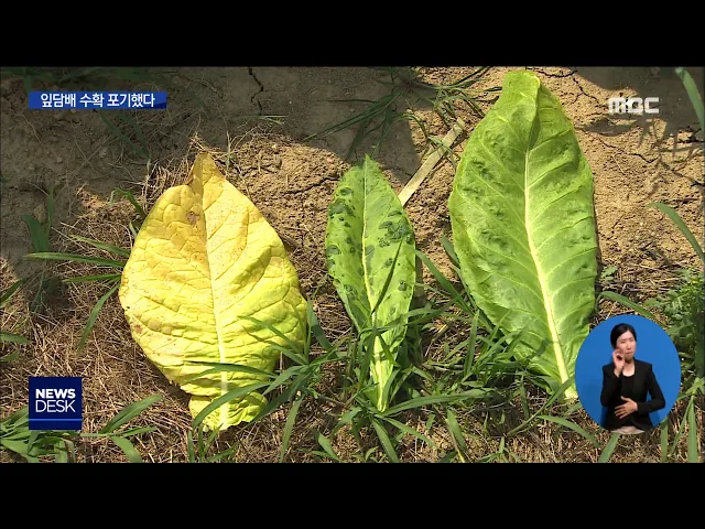 ◀ANC▶ 잎담배 재배 농민들이 수확철을 앞두고 시름에 빠졌습니다. 담배농사에 치명적인 모자이크 바이러스병 피해가 빠르게 확산되고 있기때문인데 농민들은 불량 종자를 원인으로 꼽고 있습니다. 문연철 기자가 취재했습니다. ◀END▶ ◀VCR▶ 잎담배 밭이 누렇게 변색되고 있습니다. 한창 자라야할 담배 이파리마다 ...