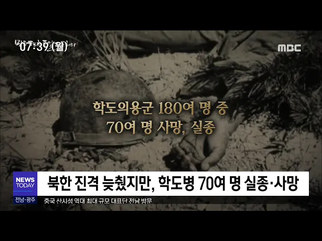 ◀ANC▶ 6.25 전쟁 당시 전남동부지역 학도병 183명이 섬진강 인근 화개읍에서 북한군과 맞서 싸우다 70명이 실종되거나 전사했습니다. 이를 화개전투라 하는데, 화개전투 참전 유공자들이 정부와 지역사회의 관심을 호소했습니다. 강서영 기자입니다. ◀VCR▶ 열 다섯살에 나라를 지키기 위해 입대했던 소년은, 백발이 ...