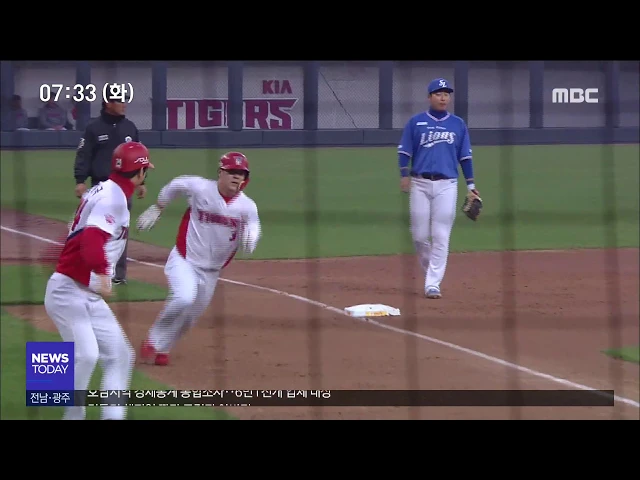 (앵커) 기아타이거즈가 사흘 연속 한 점 차로 경기를 내줬습니다. 매 경기 막판까지 추격했지만 뒤집기에는 실패했는데 그동안 기록을 봐도 역전 확률은 극히 낮았습니다. 이계상 기자 (기자) 두산과의 현충일 경기에서 12:3 대승을 거두고 NC 원정에 나선 기아타이거즈. 1차전에서도... ◀SYN▶ (모창민이 경기를 끝내버...