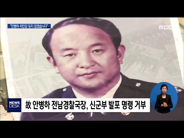 ◀ANC▶ 1980년 5월, 안병하 전남경찰국장은 신군부의 시위대 강경 진압 명령을 거부했습니다 그래서 시민들의 희생을 줄일 수 있었는데요. 안 치안감의 위민정신을 기리기 위한 '안병하 공원'이 조성됐습니다. 김양훈 기자가 취재했습니다. ◀END▶ 안병하 전남경찰국장은 80년 5월, 신군부의 발포 명령을 끝까지 거부했...