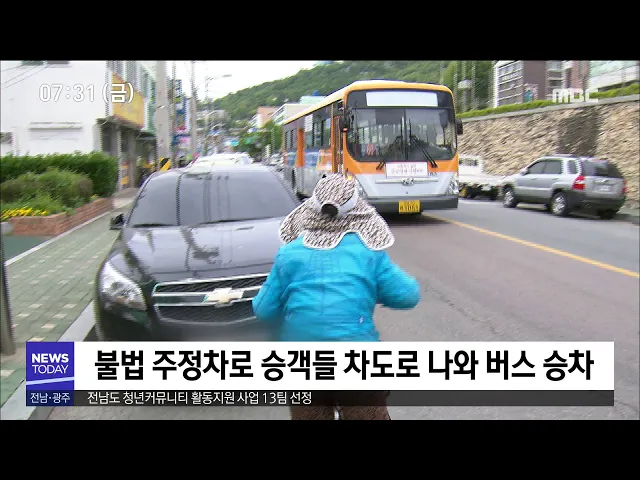 ◀ANC▶ 얌체 불법주차 차량들이 심지어 버스정류장까지 점령하고 있습니다. 불법 주차된 차량 때문에 버스는 도로 한복판에 정차해야 하고 버스 이용객들은 사고위험에 내몰리고 있습니다 김양훈 기자가 취재했습니다. ◀END▶ 목포의 왕복 4차선 도로 버스정류장 앞에 승용차가 버젓이 주차돼 있습니다. 버스정류장 10m...