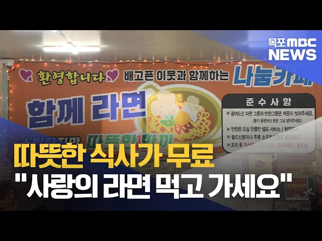◀ 앵 커 ▶하루 한끼도 제때 챙겨먹지 못하는 이들이 여전히 우리 주위에 있는데요.이런 취약 계층들에게 따뜻한 라면을 무료로 제공하는 식당이 있습니다.함께 라면 더욱 훈훈해지는 소식을김영창 기자가 전해드립니다.◀ 리포트 ▶점심 시간이 되자 동네 어르신들이 식당으로 몰려듭니다.매운라면부터 짜장라면까지다양한 라...