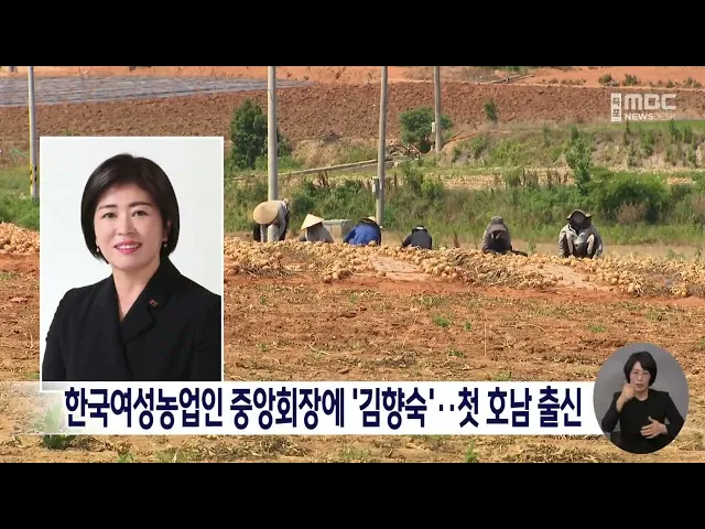 한국여성농업인 중앙회 제15대회장으로 전남도 한여농 회장을 지낸김향숙 씨가 당선됐습니다.김 회장은 첫 호남 출신 중앙회장으로, 전남도 농업*농촌 식품산업정책심의 위원회위원으로 활동하는 등 여성농업인의권익 보호 업무를 수행해왔습니다.