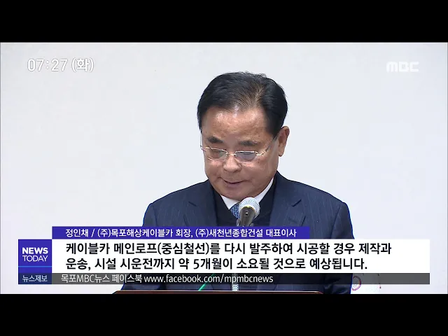 ◀ANC▶ 목포 해상케이블카 개통이 5월에서 10월로 또 다시 연기됐습니다. 지금까지 3번째인데 기술적인 문제를 떠나 신뢰와 안전에 대한 본질적인 우려도 높아지고 있습니다. 장용기기자 ◀END▶ 해상케이블카 회사 관계자들이 기자회견을 통해 개통이 연기된 배경을 설명했습니다, 지난 2일 케이블카 철제밧줄 제작사인...