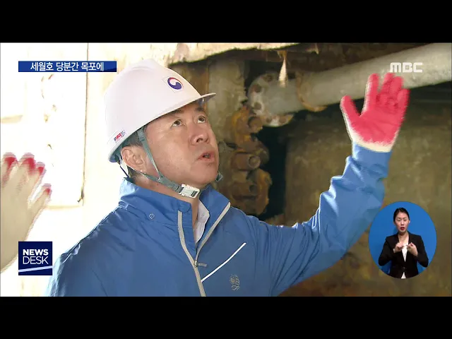 ◀ANC▶ 퇴임을 앞둔 김영춘 해양수산부 장관이 마지막 현장으로 세월호가 세워진 목포신항을 방문했습니다. 선체 처리에 대해서는 현재 법적인 권한을 가진 기구가 없고 부식 방지 조치에 대해서도 선체 조사가 우선이라고 밝혔습니다. 최진수 기자가 보도합니다. ◀END▶ ◀VCR▶ 김종식 목포시장과 함께 신항을 찾은 ...