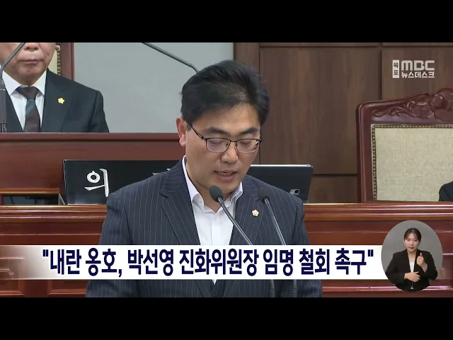 12·3 내란 사태를 옹호해 논란인진실·화해를위한과거사정리위원회박선영 위원장의 임명을 철회해야 한다는 목소리가 나왔습니다.양동진 순천시의원은 오늘(18) 시의회 본회의에서박선영 진화위원장은 과거 계엄령과 독재를 옹호하는 발언을 서슴지 않았으며,윤석열 대통령에게 내란을 사주하는 듯한 글까지 올렸다고 밝혔습...