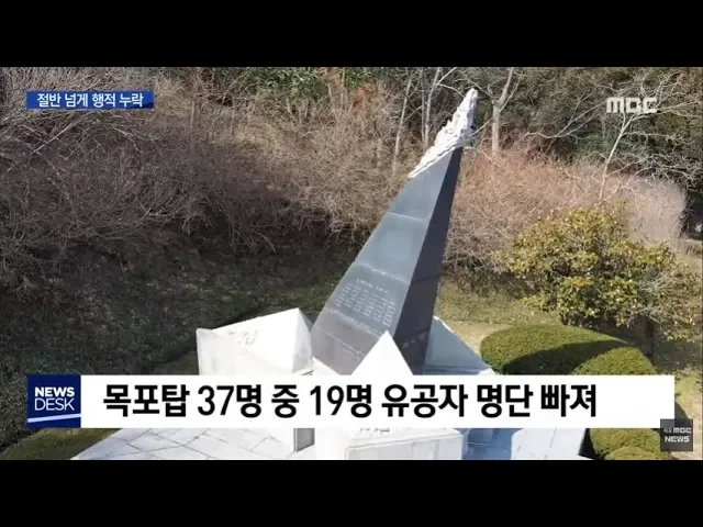 ◀ANC▶ 목포 유달산에 3.1 독립만세 운동에 기여한 애국열사 37명의 이름을 새겨 넣은 기념탑이 세워져 있습니다, 이가운데 절반이 넘는 인물이 국가보훈처 유공자 명단에 빠진 것으로 확인됐습니다. 장용기기자 ◀END▶ 지난 1983년 목포시가 주도해 유달산에 건립한 목포 3.1 독립운동탑. 100년전 목포에서 만세운동을...