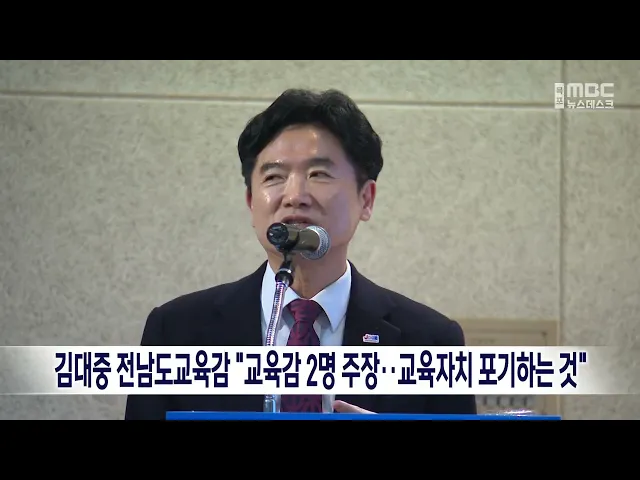 김대중 전남도교육감 "교육감 2명 주장..교육자치 포기하는 것"