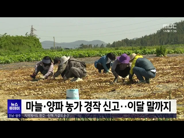 마늘과 양파의 재배 면적을 파악하고선제적 수급 안정 대책을 마련하기 위해전남도가 농가에 경작신고제 참여를 당부했습니다.신고 대상은 마늘과 양파 재배 면적이1천 제곱미터 이상인 농업경영체 등록 농업인으로, 신고 기간은 오는 31일까지입니다.신고는 읍면행정복지센터와 지역농협에방문하거나 사단법인 한국마늘연...