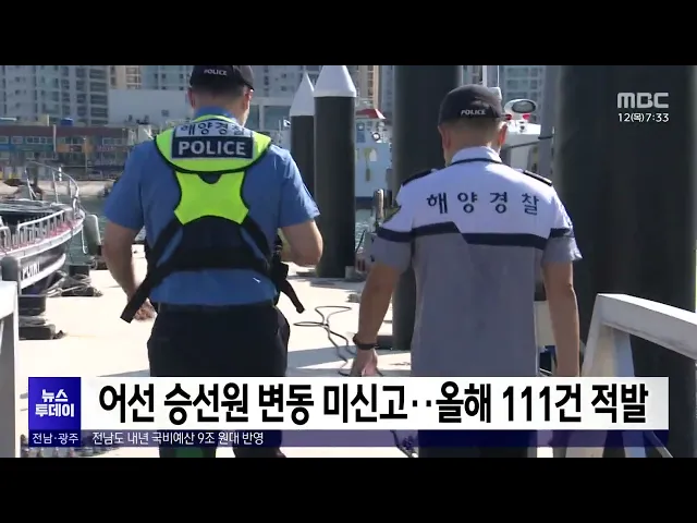 해양 사고 발생 시 구조현장 혼선을 막기 위해목포해양경찰서가 올 한 해 어선을 대상으로 승선원 변동 미신고 일제 단속을 벌인 결과,모두 111척이 적발됐습니다.해경은 겨울철 안전한 조업을 위해승선원 변동 신고 등 안전 관련 준수 사항을지켜달라고 당부했습니다.