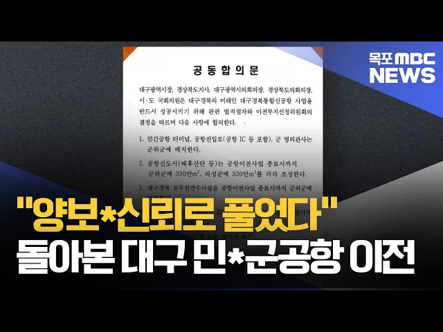 ◀ 앵 커 ▶공항문제 기획보도입니다.이전이 확정된 대구경북통합신공항 역시 초기엔 갈등의 골이 깊었습니다.그러나 지자체 간에 "원하는 모든 것을 담은합의문"을 이끌어내기 위해 서로 양보하고,신뢰하며 갈등을 풀었습니다.광주시와 전남도,무안군은 지금이라도 이같은 해법이 불가능한 걸까요?서일영 기자가 취재했습니...