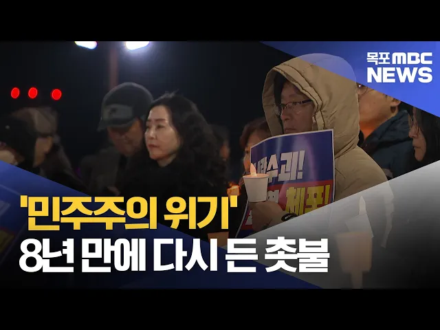 ◀ 앵 커 ▶박근혜 전 대통령 탄핵 이후 시민들이 8년 만에 또다시 거리로 나서고있습니다.민주주의 위기를 바라만 볼 수 없다며추운 겨울, 촛불을 든 시민 행렬은 전국으로 확산하고 있습니다.김규희 기자가 보도합니다.◀ 리포트 ▶◀ SYNC ▶"윤석열을 탄핵하라. 윤석열을 체포하라."한밤중 난데없는 기습 계엄령의 후폭풍은시...