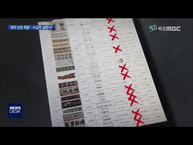 ◀ANC▶ 그런데 이런 우여곡절을 겪어 구입한 추사의 작품 상당수가 위작 논란에 휩싸이면서 파문이 일고 있습니다. ◀END▶ C/G]함평군이 2년 전 추사가 그렸다며 구입한 작품입니다.당시 15억원 이상의 가치가 있다고 평가됐습니다. 하지만 최근 한국고미술협회의 재감정에서 낙관의 위치와 모양, 화법, 나무 현판에 새...