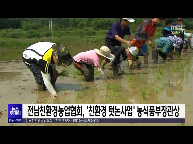 전남친환경농업협회가 '친환경 텃논 조성과 운영지원 사업' 발표대회에서 대상인농림축산식품부장관상을 받았습니다.이번 대회에서는 전국 시도협회가 운영하는5개 교육기관이 지난 8개월 동안 실시한 텃논 조성 결과를 발표했으며,전남친환경농업협회는 직접 기른 쌀을 활용한 떡메치기 등 다양한 체험을 어린이들에게제공...