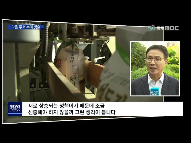 ◀ANC▶ 정부가 농민들의 반대에도 무릅쓰고 다음 주 5만 톤의 공공비축미를 시장에 풀기로 결정했습니다. 한 쪽에서는 햅쌀을 사들이고 또 다른 쪽에서는 비축미를 방출하는 이율배반적인 정부 정책. 이러는 사이 문재인 정부의 쌀 목표가격도 당초 대통령 공약보다 낮아졌습니다. 양현승 기자입니다. ◀END▶ ◀VCR▶ ...